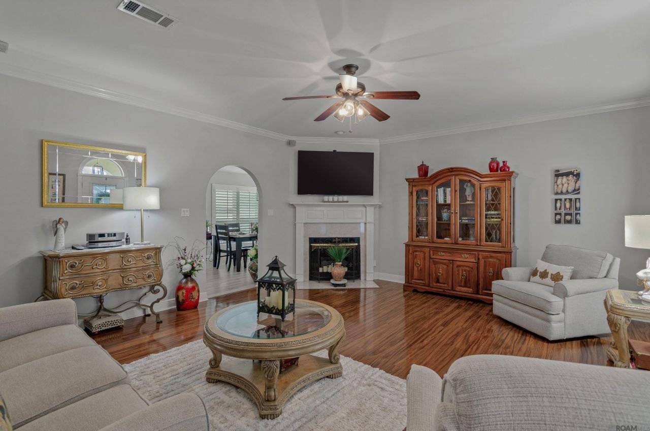Stunning, fully updated home with luxury finishes and Backyard Oasis. Welcome to this beautifully updated home packed with upgrades and thoughtful details throughout! Enjoy year-round comfort with brand new central A/C and heating, a new water Heater, storm windows throughout and a new front door, new light fixtures, and a new garbage disposal. The home features wood and luxury vinyl plank flooring " no carpet. The kitchen is a showstopper complete with a custom-built wine bar, quartz counter tops and stainless-steel appliances. Stylish finishes perfect for entertaining. Hall bath tastefully done with quartzite counter tops, new tub and surround and a new modern commode. Primary bath offers a spa-like retreat featuring a new soaking tub, oversized shower with a seat, and new commode. Designed for relaxation and comfort. Home also features full house generator, security system with ring doorbells and plantation shutters throughout. Step outside to a backyard that truly steals the show. Enjoy the covered patio with fans, surround sound and a big screen TV. The yard features a charming New Orleans style courtyard enclosed with a wrought iron and brick fence. This home combines modern upgrades, timeless style and incredible outdoor living. FULL HOUSE GENERATOR. Don't miss the opportunity to make it YOURS!!
