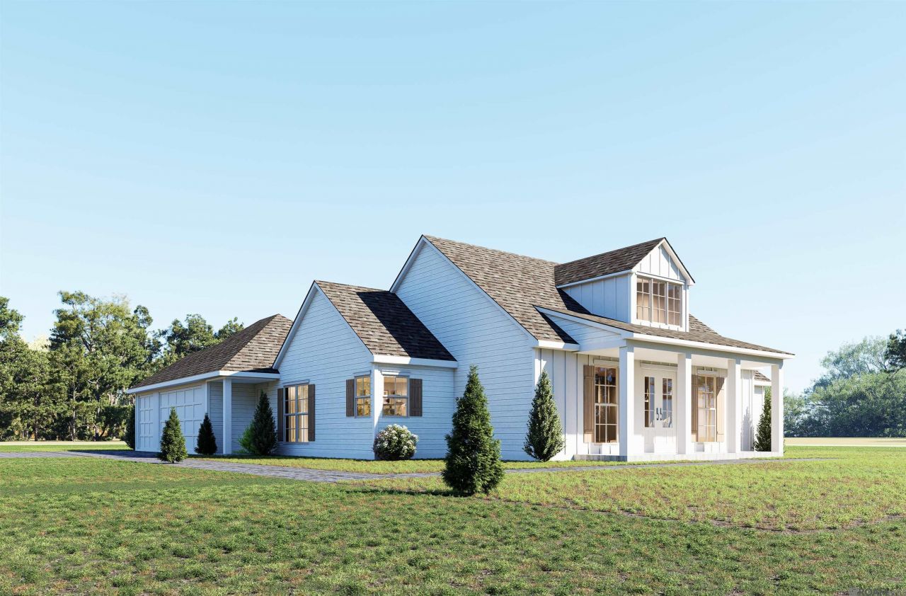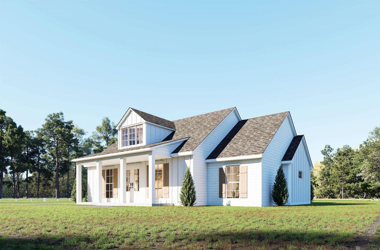 The Homestead is beautiful modern farmhouse design situated on a sprawling, one acre lot. This thoughfully designed home features a 4BR/2BA layout with a user friendly open concept floor plan that offers function and flair. The beautiful front porch features double doors that welcome you into the beautiful foyer and family room. Spaces are defined in this open concept with a stunning cypress beam at the kitchen/dining area. The primary suite is tucked away for max privacy and features a beautiful bathroom with free standing tub and separate shower. Double vanities offer plenty of space for all. The walk-in closet is large and practical. This home is designed entertaining or everyday living featuring a large kitchen island, quartz counter tops, stainless appliances, and access to the oversized rear porch. Natural light pours in through the rear wall of windows, providing picturesque views of the private, wooded backyard. Enjoying the outdoors is easy with the lovely covered porches. The rear porch connects seamlessly to the open carport offer even more space for outdoor entertaining. All this plus a convenient mud room and laundry and a dedicated storage area located conveniently behind the carport. The gorgeous lot is bordered on two sides by a beautiful brick and rail fence and has beautiful oak trees to tie it all together. No flood insurance required!!