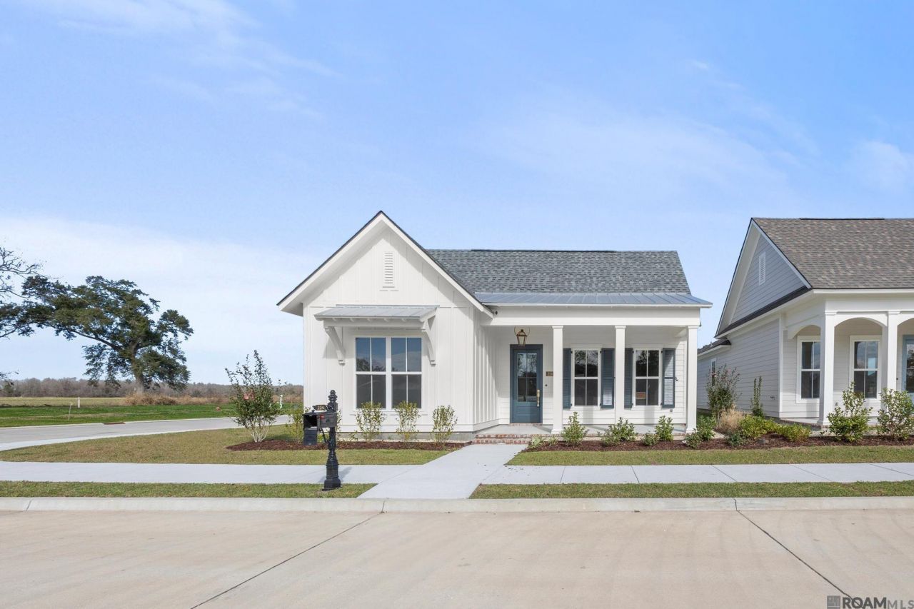 Middleton floorplan by Level Home ready now on a corner lot in The Settlement at Live Oak! The Middleton is a one-story 2400 sq foot home with four bedrooms and three full baths. You will enter this home from the inviting front porch with bricked steps and a hanging gas lantern into the foyer / dining room which will lead you into the open living and kitchen. The dining room is located off the foyer and living space and looks out to the front porch and streetscape. The living room is centered around a vent-less gas fireplace with quartz surround and has the option to add custom built-in wall units. The stunning kitchen features custom painted cabinets with 5'' cabinet hardware pulls & under cabinet lighting, a large center island with single basin granite composite sink & over-hanging pendant lights, stainless appliances including a gas cooktop with single wall oven, Carrara Blanco quartz countertops, Murali Matte tiled backsplash & a walk-in corner pantry. The master suite is privately located at the rear of the home & features a premium master bath layout which includes a separate rectangular soaking tub, custom tiled shower with a bench & a seamless glass enclosure, dual vanities with quartz countertops, custom framed mirrors & a huge walk-in closet. Bedrooms two & three share a full bath & bedroom four has it's own bathroom. The large utility room with a linen closet & an optional mud bench area is located off the garage entry. The spacious courtyard porch is covered & is perfect for outdoor entertainment. Professionally landscaped and fully sodded yard! MOVE IN READY!! The Settlement at Live Oak offers beautiful homesites in the heart of Thibodaux along Bayou Lafourche & features an abundance of green spaces, large recreational lake, luxurious community pool and pavilion, scenic ponds, local shopping, dining & more! Other lots/plans available.