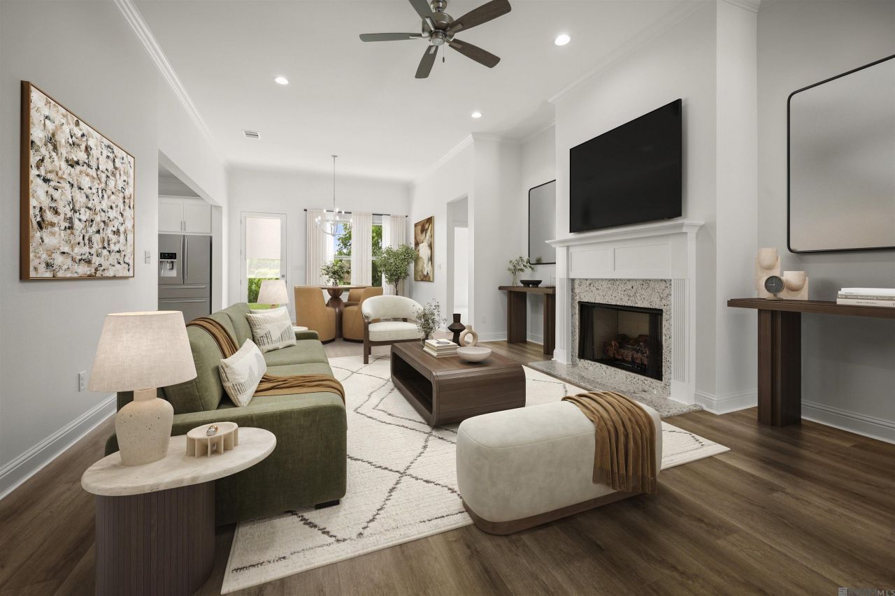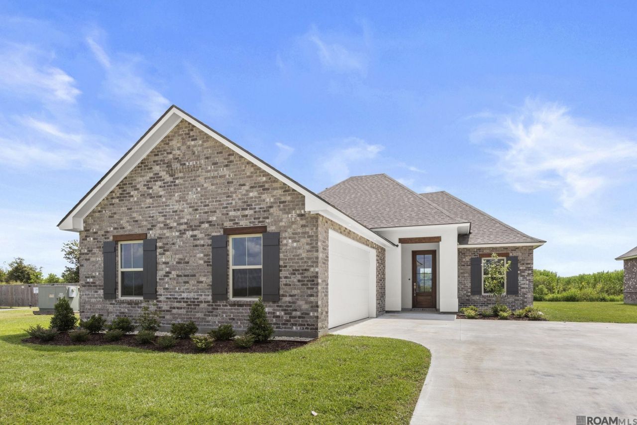 Columbus A floorplan by Level Homes ready now in St. John Place! This one story, spacious and open plan features 3 bedrooms, 2 full baths plus an office with just over 2000 sq ft! Enter this home from the charming front porch into the foyer which leads you to the office and then the open living and dining room. The living room features a vent-less gas fireplace with a Moonlite granite surround and the option to add 'optional built in wall units. The kitchen is set off of the dining area and features custom painted cabinets with 5 hardware pulls, large center island with sink and two overhanging pendant lights, 3 cm Moonlite granite countertops, white subway tile backsplash, stainless appliance package including 30 gas cooktop and single wall oven and a walk-in corner pantry. The master suite is located off the rear of the home and features a spa like bath with a separate tub and custom job built tiled shower with a seamless shower door, framed mirrors, dual sinks with granite countertops and a huge walk-in closet! Bedrooms 2 and 3 are on the opposite side of the home and share a hall bath. There is a mudroom located off the garage entry with space for an optional built-in mud bench or desk. Patio is plumbed for gas grill! The yard is professionally landscaped and fully sodded. MOVE IN READY!. Other lots and plans available. St. John Place offers beautiful homesites in Thibodaux along Bayou Lafourche, featuring beautiful landscaped entrances, two stocked ponds, walking paths, and a community playground.